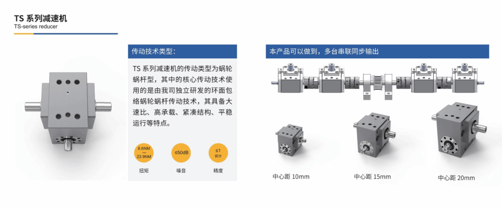 • 陶世环面包络减速器在精度表现上实现了质的飞跃。精度达到±0.5弧分,同时运行噪音低于50分贝。