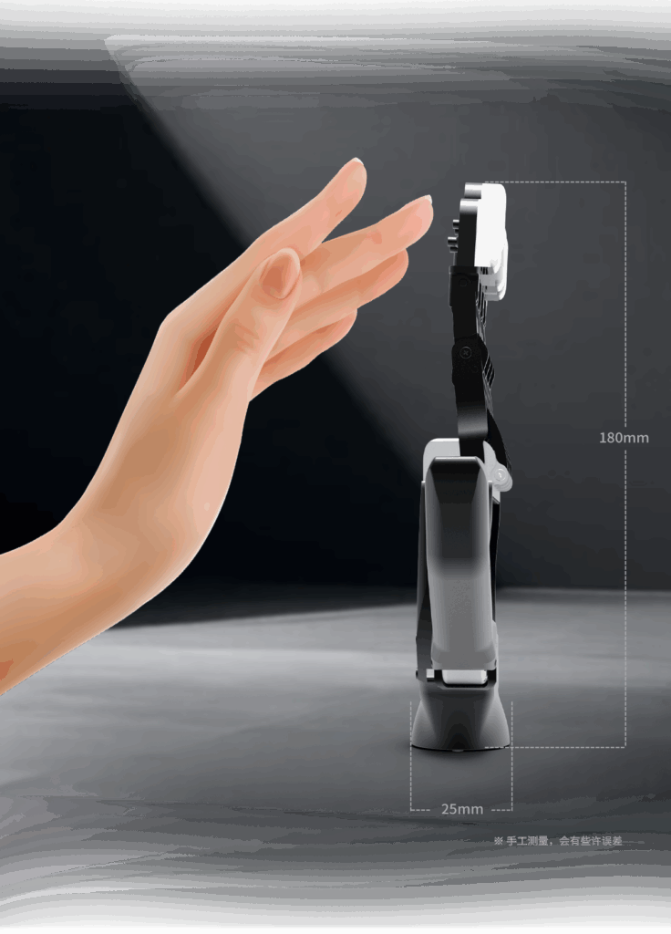 2.每个手指拥有4个自由度,手掌也可以根据需要多加1个自由度。每个关节均有减速机与电机,可独立控制弯曲;