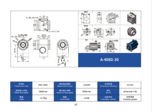 A 系列减速机的传动类型为多级复合蜗轮蜗杆型,其中的核心传动技术使用的是由我司独立研发的环面包络蜗轮蜗杆传动技术,其具备大速比、高承载、紧凑结构、平稳运行等特点。